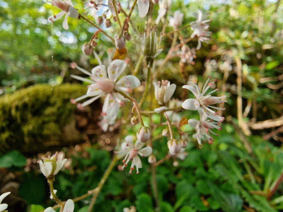 Cabáiste an Mhadra Rua Saxifraga spathularis Dúchasach Ilbhliantóg Planda Bláthach Tréimhse Faoi BhláthEaFeMáAiBeMeIúLúMFDFSaNo Ord: Saxifragales Fine: Saxifragaceae Géineas: Saxifraga Duilleog: Ramhardhuilleach, Spúnógach Airde: 30cm Bláth: Bán, Bándearg Gnáthóg: Coillte Gailearaí