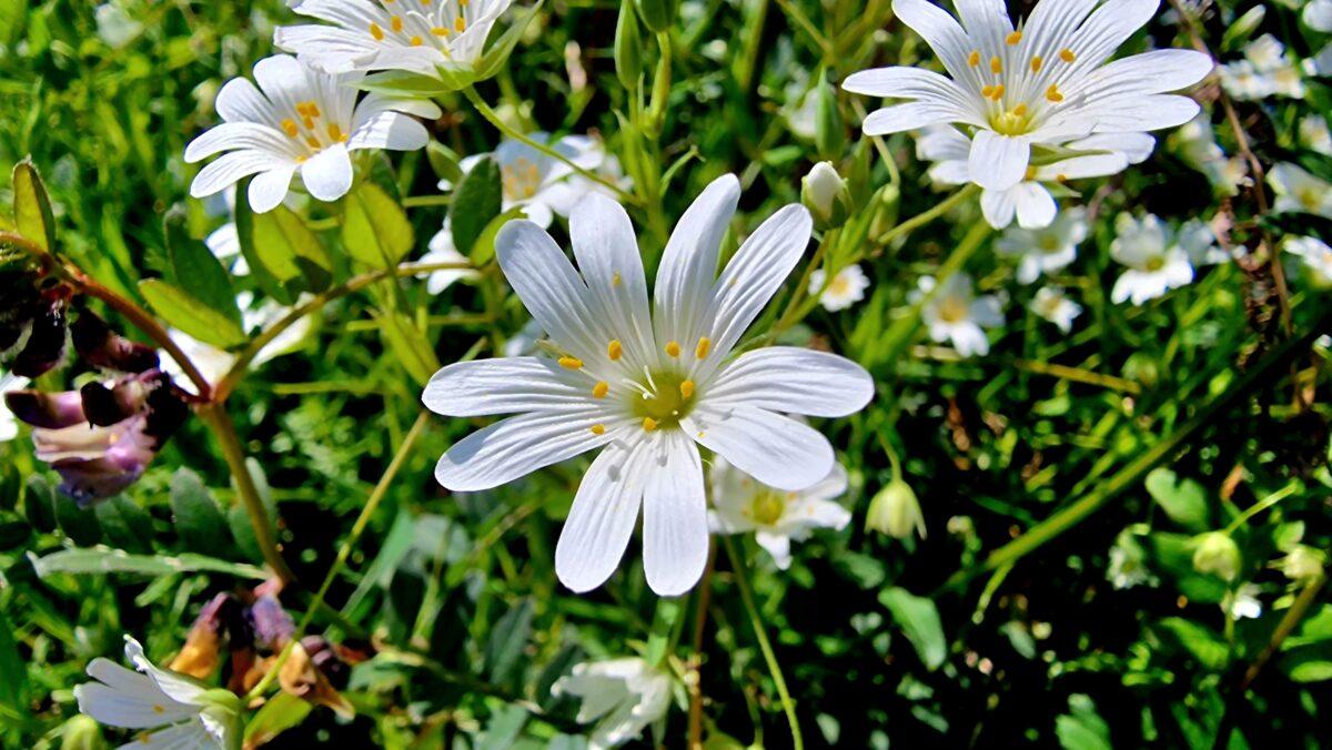An Tursarraing Mhór Stellaria holostea Dúchasach Ilbhliantóg Planda Bláthach Tréimhse Faoi BhláthEaFeMáAiBeMeIúLúMFDFSaNo Ord: Caryophyllales Fine: Caryophyllaceae Géineas: Stellaria Duilleog: Lansach, Líneach Airde: 60cm Bláth: Bán Gnáthóg: Talamh Féaraigh, Taobh an Bhóthair Ainm Eile: Tuirseach Gailearaí